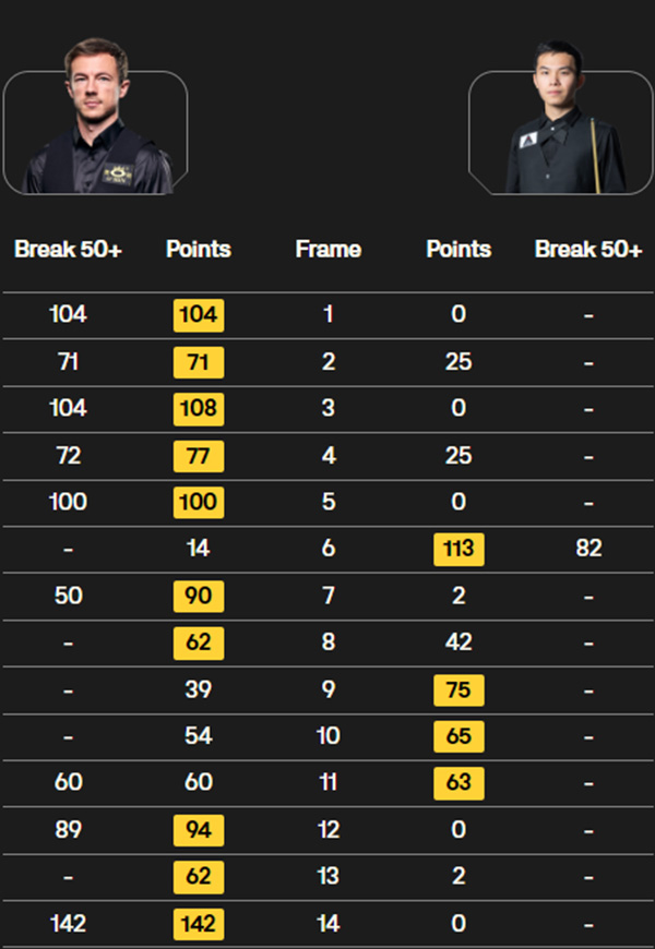 希金斯五连鞭6-2轻取沃拉斯顿,晋级2025斯诺克英锦赛16强