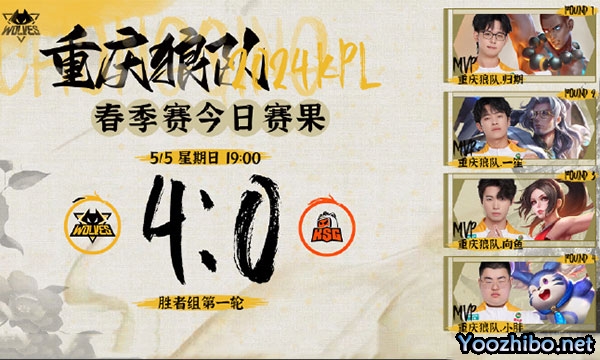 JRS直播网讯 北京时间5月5日晚,2024年KPL(王者荣耀职业联赛)春季赛季后赛胜者组第二场比赛,重庆狼队4比0横扫苏州KSG,晋级胜者组决赛,与成都AG超玩会会师。