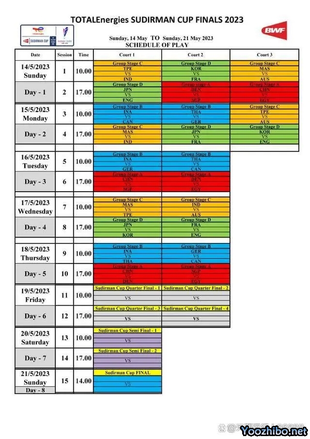 | 2023羽毛球苏迪曼杯赛赛程一览 |