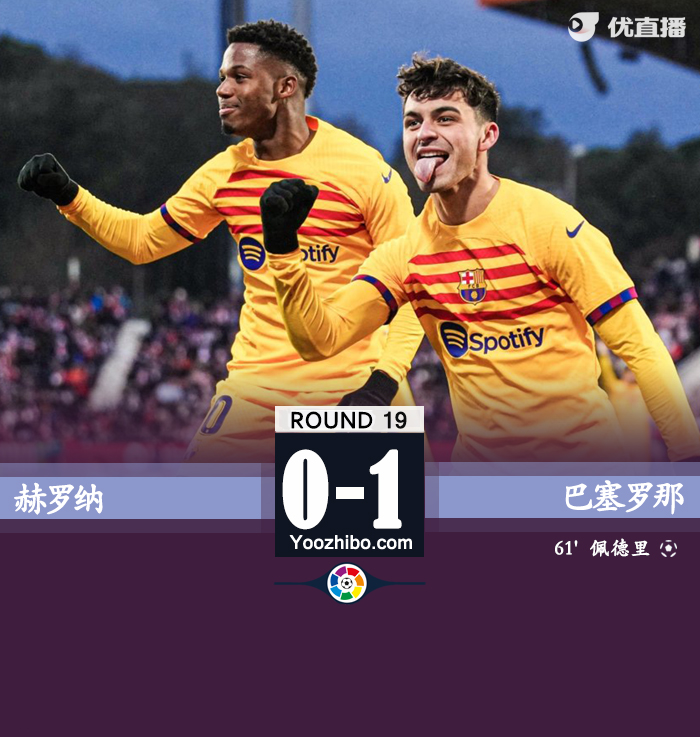 JRS直播网讯 北京时间1月28日23:15,西甲第19轮,赫罗纳vs巴萨。上半场,登贝莱第25分钟伤退,佩德里替补登场第100次为球队出战,法蒂染黄;下半场,佩德里补射打破僵局,双方此后均未进球。最终,巴萨1-0力克赫罗纳,多赛一场6分领跑。