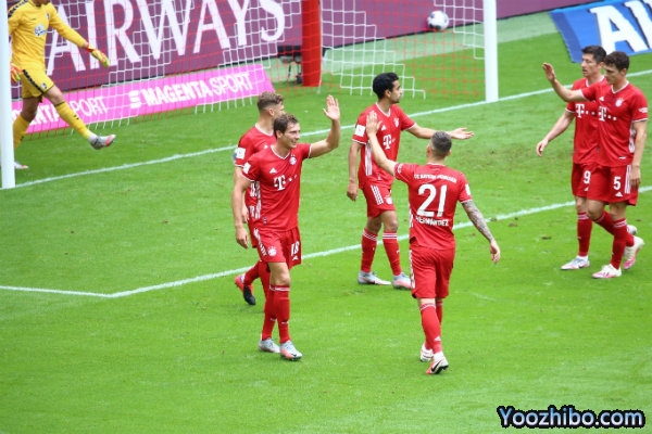 北京时间6月20日晚21时30分,德甲第33轮比赛继续进行,拜仁慕尼黑坐镇主场迎战弗赖堡。上半场,莱万两射一传,基米希破门,赫勒为客队扳回一球;下半场,拜仁占据优势但没能改写比分,穆勒与进球差之毫厘。最终,拜仁主场3-1战胜弗赖堡。