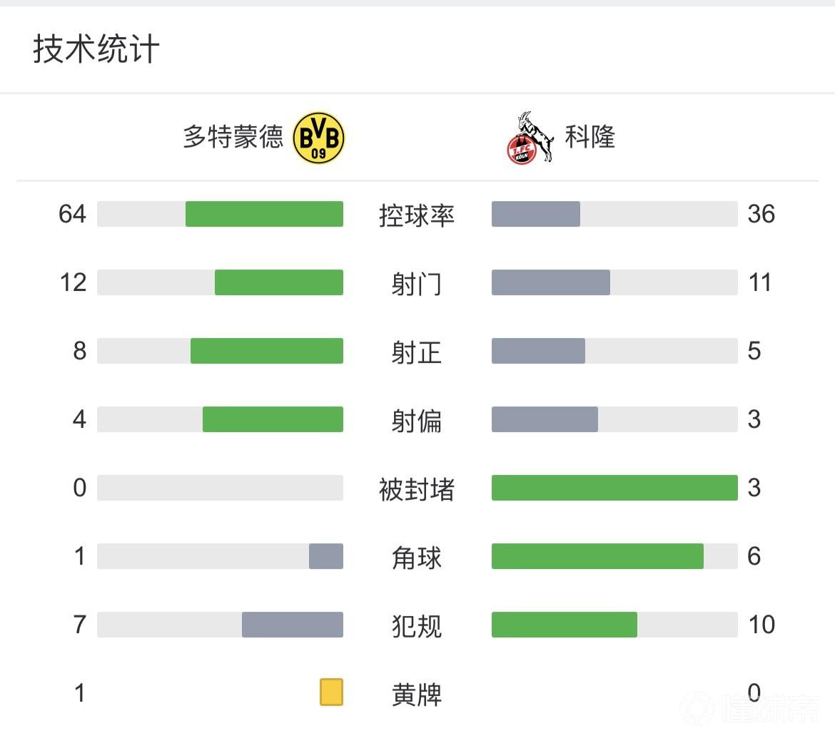 第68分钟,达胡德主罚任意球射门中框弹出,阿莱补射空门得手,多特蒙德5-1科隆!