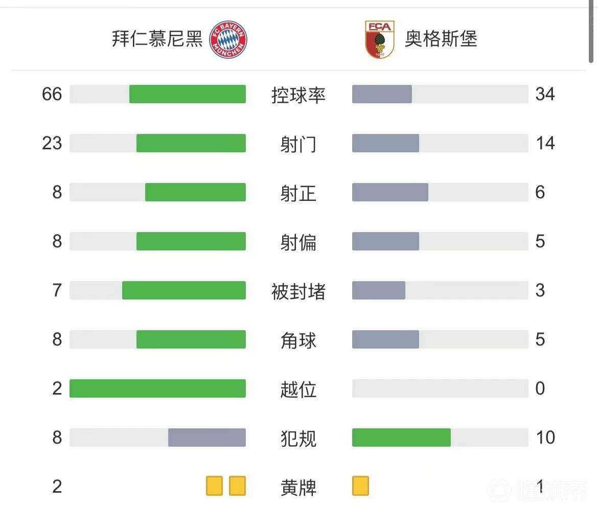 最终拜仁5-3奥格斯堡,继续领跑积分榜。