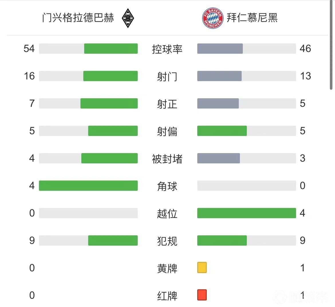 最终拜仁2-3不敌门兴,本赛季联赛两次交手均未能战胜对手。