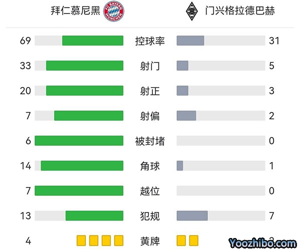全场比赛结束,门兴1-1战平拜仁。
