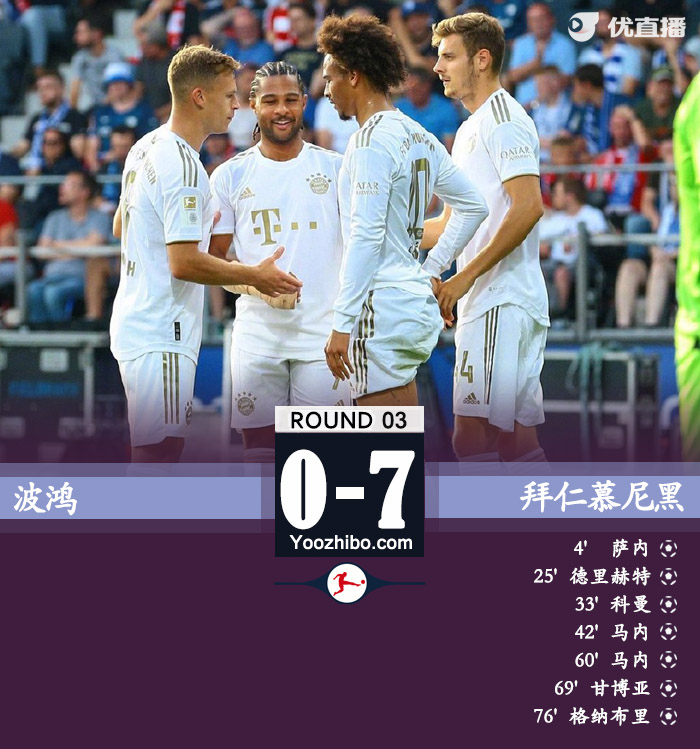 下半场没有伤停补时,全场比赛结束,最终拜仁7-0击败波鸿。