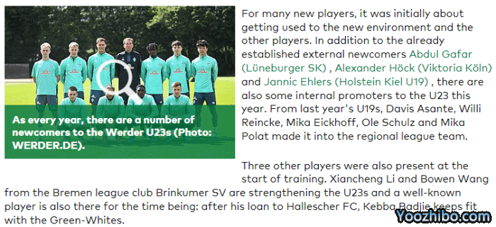 JRS直播网06月22日讯据云达不莱梅官网报道,两名中国球员李贤成和王博文已经加入不莱梅U23梯队。
