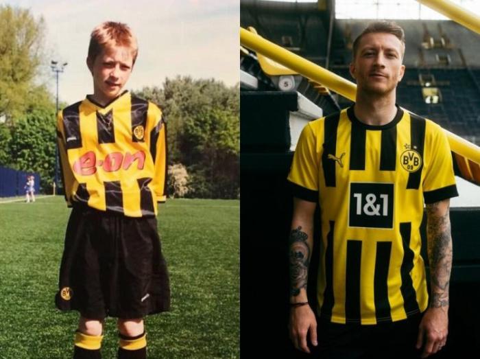 JRS直播网05月14日讯 2000年身穿多特球衣的罗伊斯异常青涩,而2022年的罗伊斯已经是队长和领袖。在哈兰德出走后,他依然选择留守。