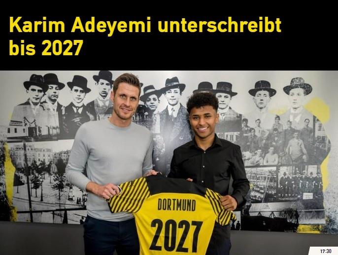 JRS直播网05月11日讯 多特蒙德官方消息,俱乐部签下萨尔茨堡红牛的德国前锋阿德耶米,双方签约至2027年。