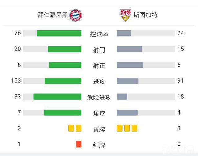 全场比赛结束,拜仁慕尼黑2-2斯图加特。