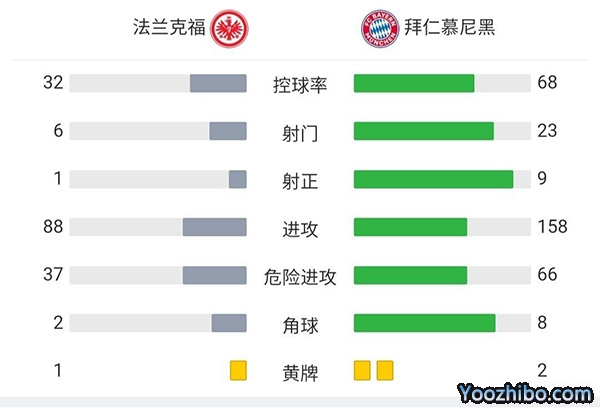 全场比赛结束,拜仁慕尼黑做客1-0击败法兰克福。