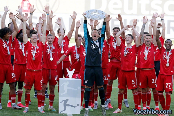 来源:JRS直播网06-29 20:32 北京时间06月27日结束的德甲第34轮的比赛中,拜仁以积分82分排名第一,比第二名的多特蒙德高出13分,拜仁获得2019-2020德国甲级联赛冠军,而这一个德甲冠军也是拜仁历史上第29个德甲冠军。同时拜仁也完成了德甲八连冠,上一次德甲有拜仁以外的球队夺冠还是多特。排名第18的帕德伯恩跟排名第17的杜塞尔多夫下个赛季降级为乙级联赛,德乙排名第一,第二的比勒菲尔德跟斯图加特直接晋级下赛季的德甲联赛。德甲排名第16的云达不莱梅将跟德乙排名第三的海登海姆进行附加赛,胜者进入下赛季甲级联赛,败者进入乙级联赛。