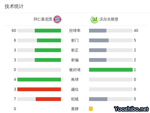 全场比赛结束,拜仁慕尼黑2-0沃尔夫斯堡。