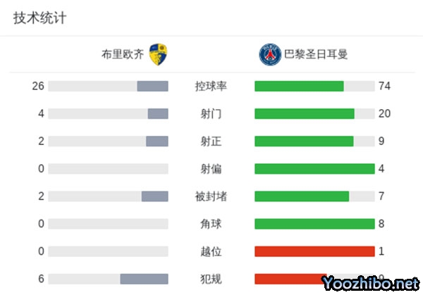 巴黎7-0大胜布里欧齐 贡萨洛-拉莫斯3射1传杜埃1射2传