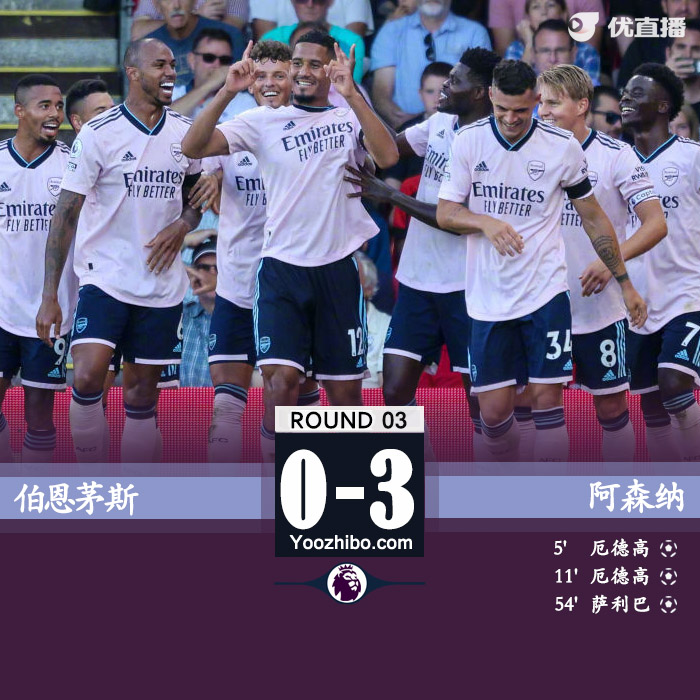 JRS直播网讯北京时间8月21日00:30,英超第3轮,阿森纳客场对阵伯恩茅斯。上半场,热苏斯一条龙策动进攻,厄德高补射破门,巴西人随后助攻厄德高双响;下半场,萨利巴打入处子球,热苏斯破门但越位在先。最终,阿森纳3-0击败伯恩茅斯,取得3连胜暂时登顶积分榜。