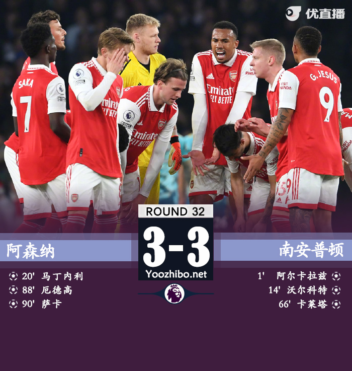 - 【录像】[咪咕原声]英超第32轮 阿森纳vs南安普顿 全场录像[有比分]2023-04-22 04:32:55