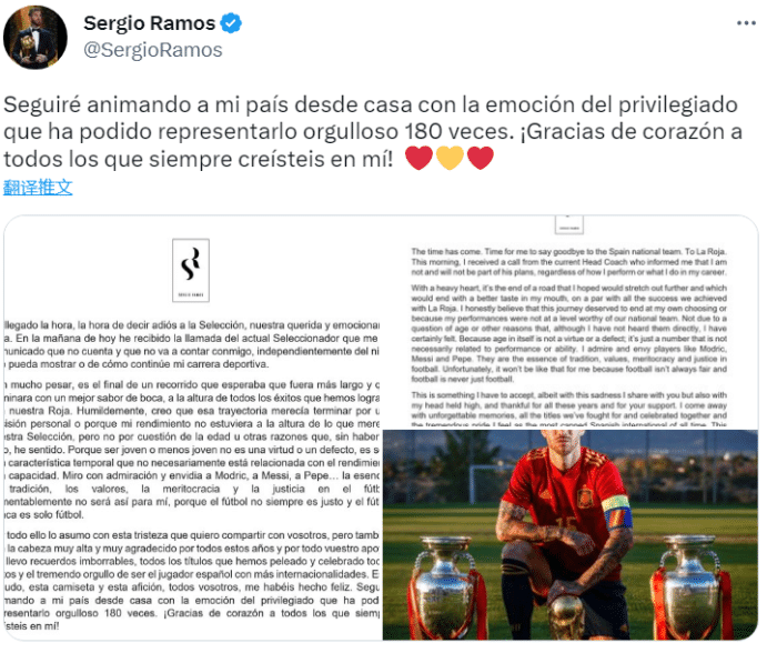 官方:拉莫斯从西班牙国家队退役