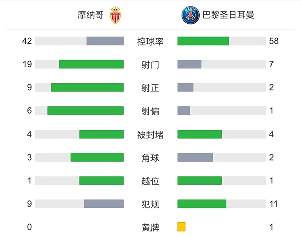 全场比赛结束,最终巴黎圣日耳曼客场1-3不敌摩纳哥。