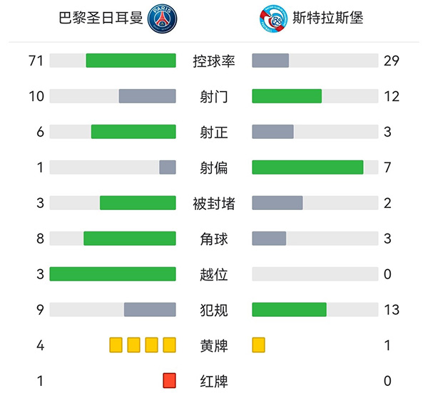 第13分钟,内马尔主罚边路任意球开出,马尔基尼奥斯抢点头球破门,巴黎圣日耳曼1-0斯特拉斯堡!
