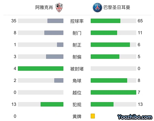 全场结束,巴黎圣日耳曼客场3-0完胜阿雅克肖。