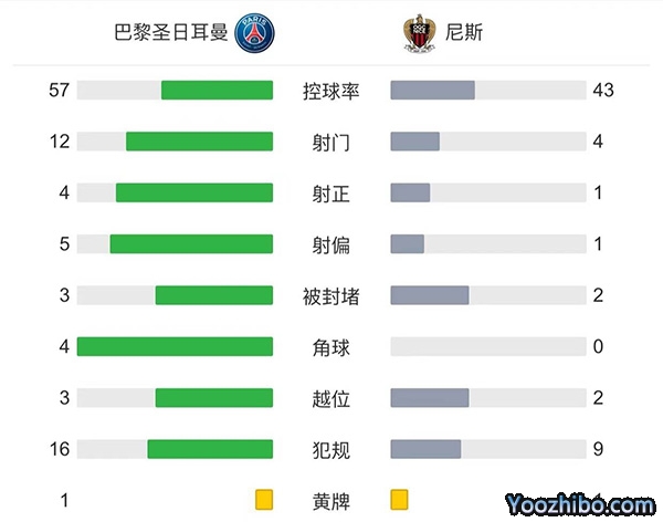 全场比赛结束,巴黎圣日耳曼主场2-1战胜尼斯。