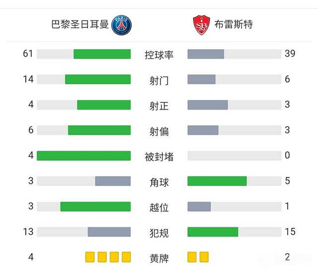 巴黎1-0布雷斯特 内马尔破门梅西助攻