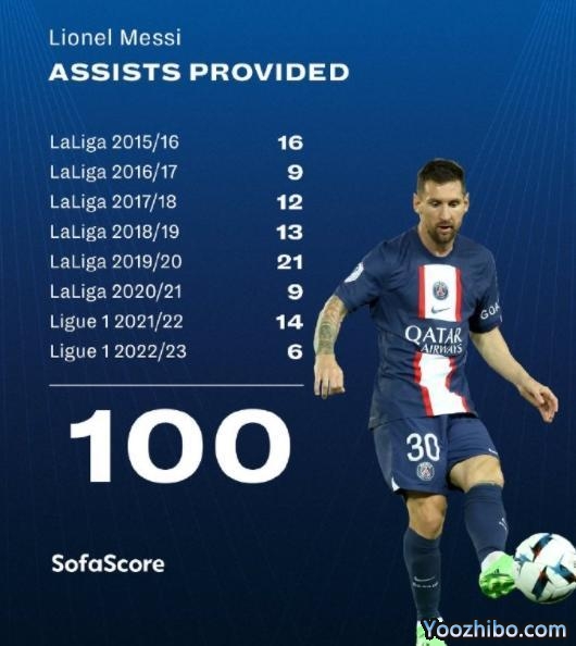 JRS直播网09月05日讯 消息,在巴黎3-0击败南特的比赛中,梅西再次助攻2次,15-16赛季以来他已经助攻100次。
