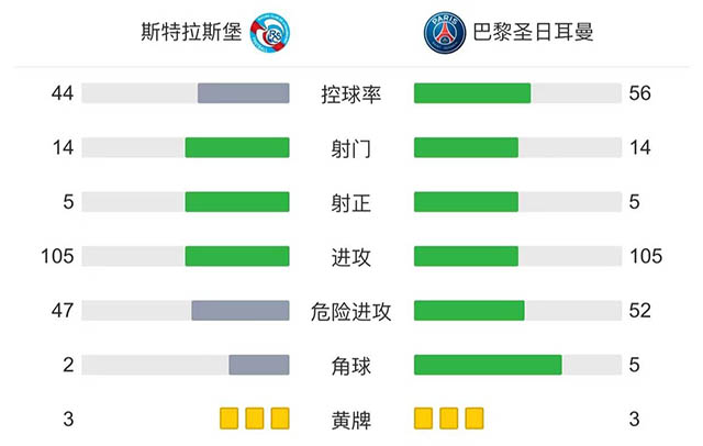 全场比赛结束,最终巴黎圣日耳曼3-3遭斯特拉斯堡绝平。