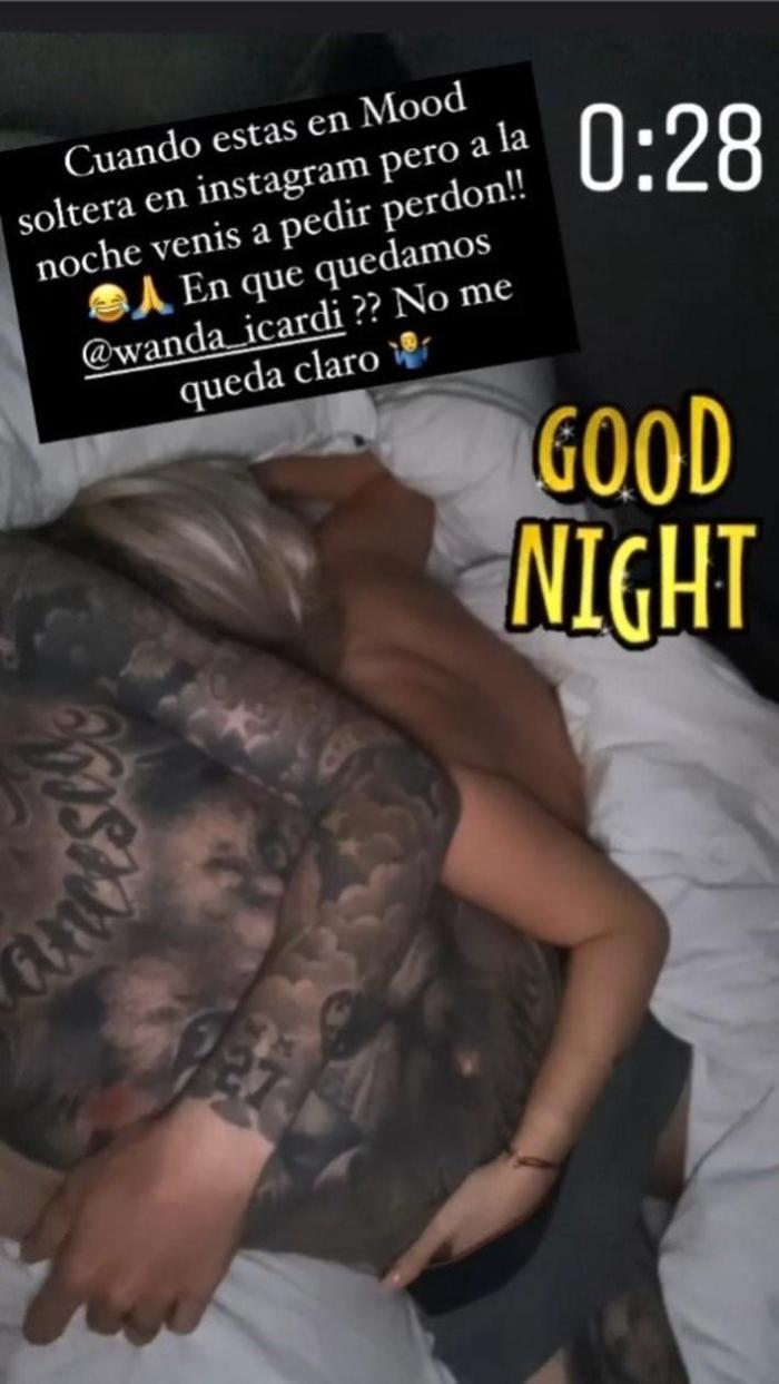 伊卡尔迪晒出这张照片并写道:“当你开心的时候,就在INS上随心所欲。晚上请求原谅!旺达,我们到底处于什么阶段?我不明白!”