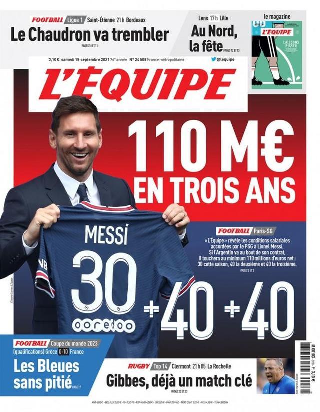 JRS直播网9月18日讯 今日,针对梅西的薪资,《队报》今日头版曝光了相关细节,报道称,梅西的3年薪水共计至少税后1.1亿欧。