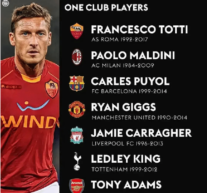外媒盘点足坛七大忠魂:托蒂、马队在列,梅西可惜了!