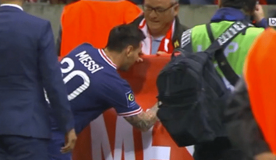 梅西被侵犯3次全场最多,对手门将儿子成迷弟,给年长球迷的横幅签名