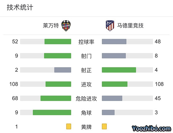 下半场补时6分钟,最终马竞客场2-0击败莱万特,晋级国王杯八强。