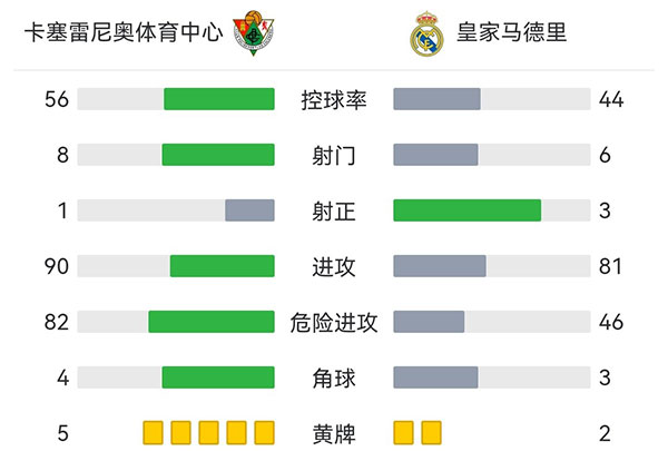 全场比赛结束,最终皇马客场1-0卡塞雷诺晋级下一轮。