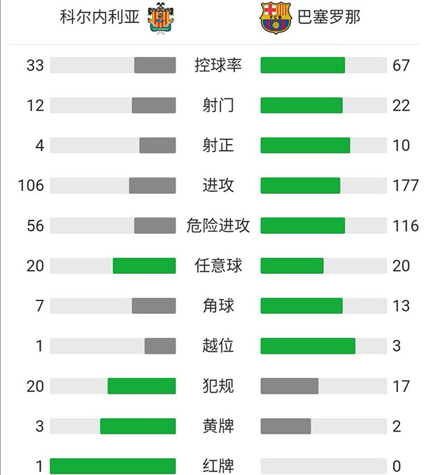 最终,巴萨客场通过加时2-0击败科内利亚,成功晋级国王杯16强。