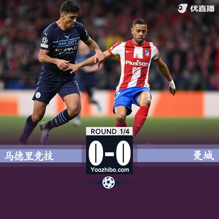 JRS直播网4月14日讯 北京时间4月14日凌晨3时,2021-2022赛季欧冠四分之一决赛次回合展开角逐,曼城客场对阵马德里竞技。上半场双方均无建树,京多安有一脚射门击中立柱。曼城半场0-0战平马德里竞技。下半场双方也没有进球,沃克因伤下场,费利佩染红。最终曼城客场0-0战平马德里竞技,以两回合总比分1-0淘汰对手,曼城晋级欧冠半决赛,将对战皇家马德里。