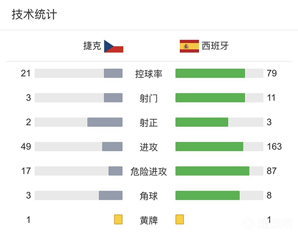 全场比赛结束,最终西班牙2-2捷克。
