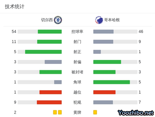 第54分钟,切尔西打破僵局!霍尔左路弧顶连续内切过人到禁区低射破门,切尔西1-0哥本哈根。