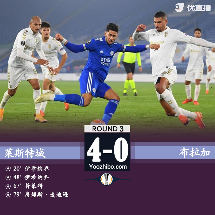 足球直播欧联杯 11月06日 欧联杯G组第3轮 莱斯特城vs布拉加 全场录像及集锦