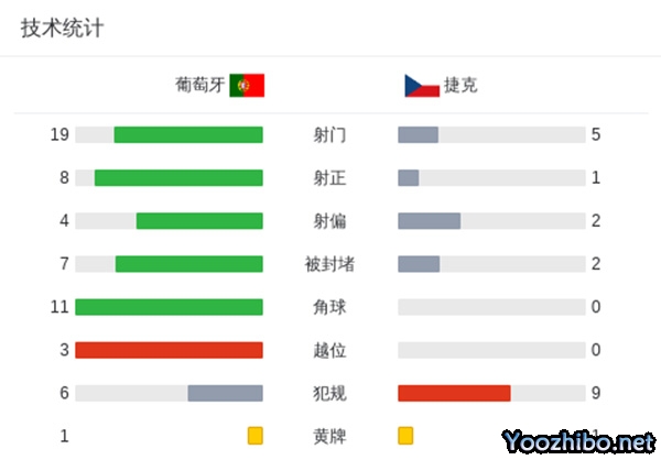 第62分钟,捷克左侧传中,后点曹法尔做球架炮,普罗沃德跟进世界波破门,葡萄牙0-1落后↓