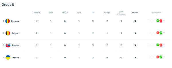 由于4队都同分,因此末轮2场对决,对于4队而言都是“生死战“。末轮对阵形势为乌克兰对阵比利时,而斯洛伐克则面对罗马尼亚。末轮这2场生死战,将会在27日0点同时开打。