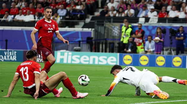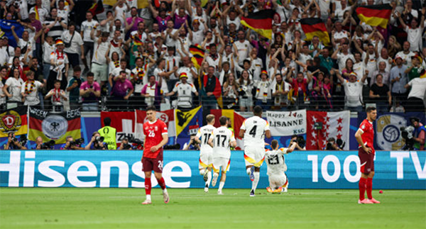 来源:JRS直播网06-24 11:50JRS直播网讯 北京时间6月24日,欧洲杯A组迎来大结局,德国队和瑞士正面交锋,争夺小组第一,上半场,安德里希远射破门被吹,恩多耶抢点破门为瑞士队取得领先,如果瑞士队1-0击败德国队的话,那么他们将排名小组第一。到了比赛最后时刻,替补出场的菲尔克鲁格补时绝平,也为德国队重新夺下小组第一,这样A组的德国队小组头名晋级,瑞士队排名小组第二。