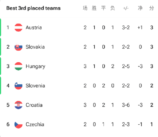 目前的6个小组排名中,克罗地亚已经是在晋级线之外。积分少于奥地利和斯洛伐克,也不敌已经完赛的匈牙利,因此竞争中肯定无法超越这3队。克罗地亚唯一的希望就是把斯洛文尼亚拉下来,并且希望F组末轮格鲁吉亚和捷克都不要取胜。