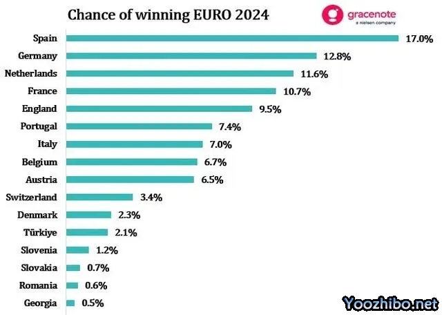 欧洲杯各队夺冠概率公布:西班牙居首,德荷紧随其后