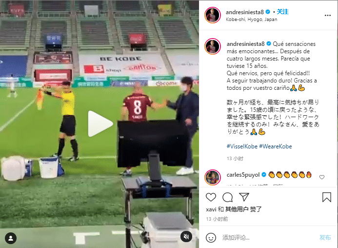 伊涅斯塔在个人Ins写道:“多么激动的感觉啊…经过四个月的努力,我感觉自己就像15岁一样,如此紧张但却如此幸福。我将继续努力,谢谢大家对我的爱!”
