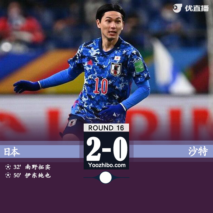 JRS直播网2月1日讯 北京时间2月1日晚上18:14,12强赛B组第8轮焦点战,日本对阵沙特。上半场,阿马勒基伤退,伊东纯也助南野拓实破门。半场战罢,日本暂1-0沙特。下半场,伊东纯也世界波。全场结束,日本2-0沙特。