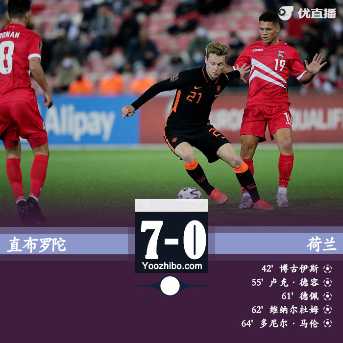 JRS直播网3月31日讯 北京时间3月31日凌晨2点45分,2022世界杯欧洲区预选赛G组第3轮展开角逐,荷兰队客场对阵直布罗陀。上半场,博古伊斯破门为荷兰队首开纪录。荷兰半场1-0领先。下半场,博古伊斯助攻吕克-德容破门,德佩打进两球,维纳尔杜姆、马伦和范德贝克先后破门,布林德因伤下场。最终荷兰客场7-0大胜直布罗陀。世预赛前三轮,荷兰取得2胜1负的战绩。