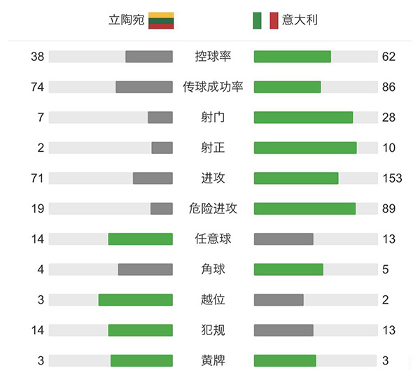 第47分钟,意大利打破僵局,森西禁区弧顶接洛卡特利倒三角横敲远射破门,意大利1-0领先立陶宛。