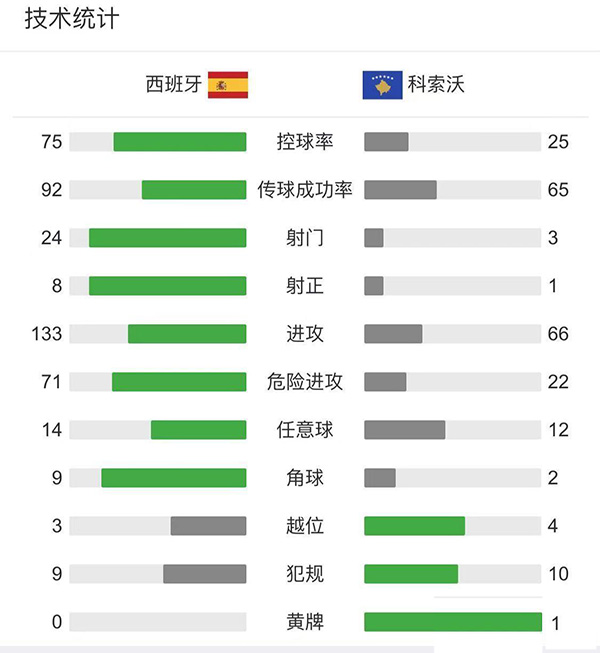 西班牙首发:23-乌奈-西蒙、4-伊尼戈-马丁内斯、22-马科斯-略伦特、12-埃里克-加西亚(85`15-拉莫斯)、18-阿尔巴、5-布斯克茨(81`16-罗德里-埃尔南德斯)、8-科克、20-佩德里(68`17-法比安-鲁伊斯)、19-奥尔莫(81`6-卡纳莱斯)、11-费兰-托雷斯、7-莫拉塔(68`9-赫拉德-莫雷诺)