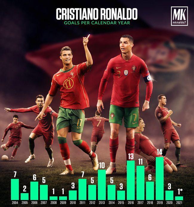 当然,除了刷新了上面三个纪录以外,C罗还有望在今年打破两大纪录。